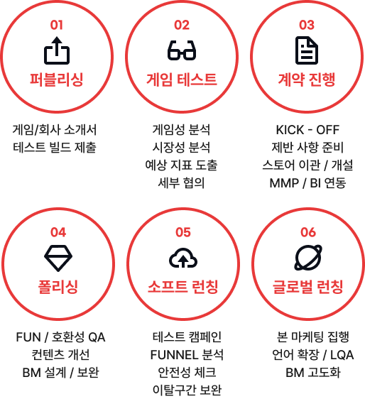 퍼블리싱 사업을 전개하고 있으며 함께 성장할 파트너 개발사를 찾고 있습니다.